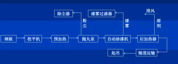 鋼板拋丸預處理線的工藝流程圖